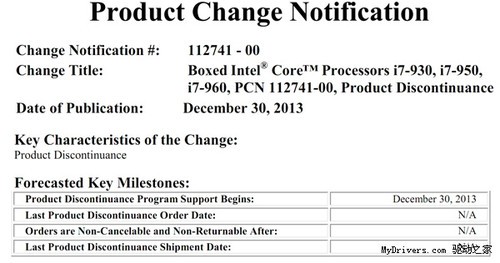 在2013年的年尾,Intel再次對(duì)三款i7-9xx系列處理器宣判了死刑,這三款處理器分別是i7-930、i7-950以及i7-970,他們都是Nehalem架構(gòu)的產(chǎn)品,是當(dāng)年當(dāng)之無(wú)愧的旗艦平臺(tái)標(biāo)配。