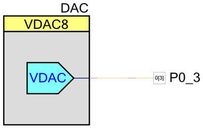 圖1:采用PSoC Creator將DAC輸出連接到模擬引腳