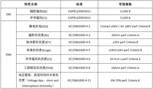 表1:EMC測試標(biāo)準(zhǔn)與結(jié)果。