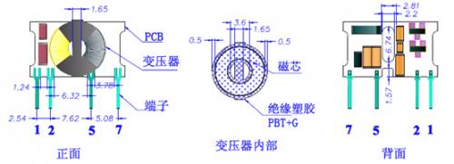 該系列電源隔離電壓高達(dá)6000VDC,絕緣電阻1000MΩ,它具有超低的隔離電容(<10pF),漏電流極低,已通過醫(yī)療IEC60601認(rèn)證。該系列產(chǎn)品的特別之處在于,其變壓器的設(shè)計需要根據(jù)便攜式醫(yī)療設(shè)備在低壓SELV應(yīng)用場合應(yīng)符合功能絕緣的要求而設(shè)計。產(chǎn)品內(nèi)部結(jié)構(gòu)如圖2所示。