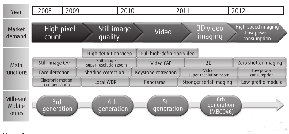 Milbeaut Mobile是適用于手機(jī)相機(jī)功能的一個(gè)圖像信號(hào)處理器系列。它由富士通開發(fā),從2003年開始暢銷市場(chǎng)。接下來,我們將對(duì)Milbeaut Mobile系列做簡要介紹,重點(diǎn)講述最新Milbeaut Mobile處理器MBG046的系統(tǒng)架構(gòu)、配置、功能和處理性能。