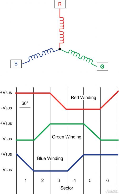 圖1:BLDC電機(jī)繞組和梯形波形