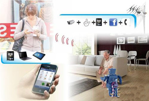 老人關(guān)懷照護(hù)系統(tǒng)設(shè)計(jì)有居家的監(jiān)控功能及和家人互動(dòng)功能,透過網(wǎng)路服務(wù),當(dāng)老人有照顧需求時(shí),可利用手勢(shì)辨識(shí)功能呼叫機(jī)器人至身邊;當(dāng)想觀看親友在臉書(Facebook)上的消息及圖片時(shí),可利用臉書動(dòng)態(tài)服務(wù),即時(shí)得知親友最新動(dòng)態(tài)訊息,也可透過網(wǎng)路通話與遠(yuǎn)方的家人進(jìn)行視頻聊天;同時(shí)也可隨時(shí)監(jiān)控,當(dāng)意外發(fā)生時(shí)可即時(shí)通知家人及醫(yī)護(hù)人員進(jìn)行處理。