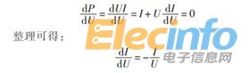 目前常用的最大功率跟蹤算法主要有恒定電壓跟蹤法、擾動觀察法、電導(dǎo)增量法等幾種,其中電導(dǎo)增量法以優(yōu)良的跟蹤性能倍受青睞。下面簡單介紹其工作原理。圖4是太陽能電池特性曲線圖。由圖可以看出,在最大功率點(diǎn)的時候功率曲線斜率為0,即功率P對電壓V的導(dǎo)數(shù)為0,所以有dPdU =0,又因?yàn)镻=UI,所以: