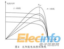 太陽能電池是一種非線性直流電源,它的輸出受太陽光照條件的和溫度等環(huán)境影響非常大。在一定太陽照度和一定結(jié)溫的條件下,當(dāng)光伏電池的端電壓(電流)發(fā)生變化時,其工作點(diǎn)也會沿著曲線變化。但是,一定會存在一個點(diǎn),使得太陽能電池輸出的功率最大。這一點(diǎn)就被稱為最大功率點(diǎn),尋找這一最大功率點(diǎn)的技術(shù)就被稱為最大功率跟蹤技術(shù)(Maximum Power Point Track-ing,MPPT)。