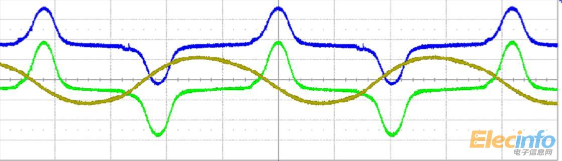 黃色的是初級電流的波形,其他兩個(gè)是次級電壓波形
