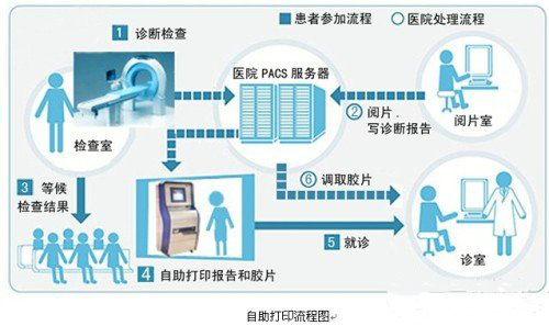 富士通K-1000醫(yī)用多功能自助打印工作站通過(guò)網(wǎng)絡(luò)與醫(yī)院的HIS、LIS、PACS等系統(tǒng)服務(wù)器連接,可以進(jìn)行化驗(yàn)單、診斷報(bào)告、膠片的自助打印。當(dāng)患者拍完CT/CR/DR等影像后,醫(yī)生編輯影像然后存入PACS系統(tǒng),接著就可以對(duì)此影像進(jìn)行診斷,并把報(bào)告發(fā)送到PACS系統(tǒng)存儲(chǔ)?;颊吣弥t(yī)院指定的就診卡(可以是條碼、磁卡、醫(yī)???、二代證等)在K-1000上刷一下就可以輕松領(lǐng)取自己的膠片及診斷報(bào)告。K-1000打印一份膠片及診斷報(bào)告僅1 分多種,而且可以24小時(shí)工作,這樣不僅降低了醫(yī)院的人力成本,排除了人為出錯(cuò)的因素,也給患者帶來(lái)了方便。