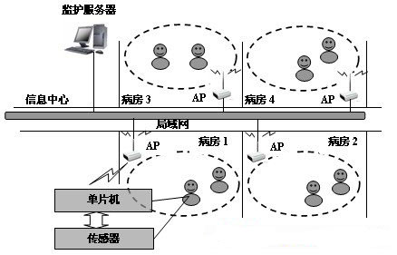 圖1 醫(yī)院無(wú)線監(jiān)控系統(tǒng)結(jié)構(gòu)