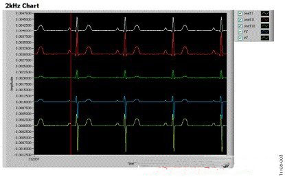 有關(guān)如何使用ADAS1000評(píng)估板的詳細(xì)說(shuō)明,請(qǐng)參考ADAS1000SDZ用戶指南。圖3顯示使用評(píng)估板軟件的典型屏幕截圖,評(píng)估板連接病人仿真器。
