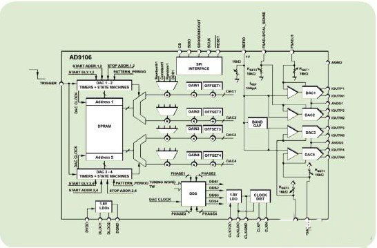 ADI提供適用于醫(yī)療超聲系統(tǒng)的線性發(fā)射解決方案,SNR性能的改進(jìn)在諧波成像(HI)方面具有顯著優(yōu)勢。線性發(fā)射解決方案使用高速TxDAC。ADI的AD9106是一種高性能12位、180Msps四通道TxDAC,集成片上模式內(nèi)存,用于復(fù)雜波形生成,具有一個輸出直接數(shù)字頻率合成器(DDS)和SPI接口,用于配置和加載波形數(shù)據(jù)。