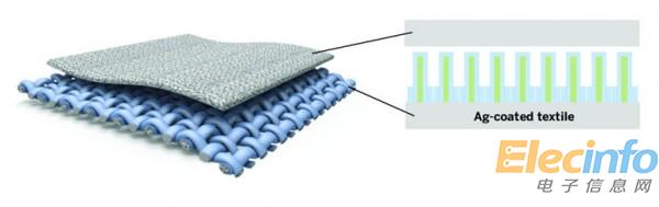 相關(guān)資料顯示動(dòng)態(tài)充電裝置的材料是由雙層織物組成,由下上圖我們可以看到其中一層為鍍銀纖維,而另一層為涂上聚二甲基硅氧烷的氧化鋅納米棒,當(dāng)兩層材料在移動(dòng)中產(chǎn)生摩擦之后就會(huì)在一端產(chǎn)生正電荷在另一端產(chǎn)生負(fù)電荷,從而形成回路。根據(jù)論文顯示的細(xì)節(jié)四平方厘米的鍍銀材料和涂上聚二甲基硅氧烷的氧化鋅納米棒能夠產(chǎn)生120V 65μA的輸出,而使用沒有涂層的氧化鋅納米能夠產(chǎn)生30V 20 μA的輸出,當(dāng)四層合在一起,能夠產(chǎn)生170V 120μA的輸出,能夠連續(xù)循環(huán)12000次。