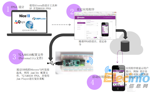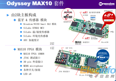 事實上,Max10早在去年9月就發(fā)布了第一款新產(chǎn)品,計劃是在今年實現(xiàn)量產(chǎn)。此次Altera發(fā)布的不僅僅是與其配套的通用開發(fā)套件,更有Altera合作的分銷商駿龍科技帶來的兩款基于MAX10的特色方案,分別針對當(dāng)下十分火熱的物聯(lián)網(wǎng)以及電機(jī)驅(qū)動應(yīng)用。其中,Mpression Odyssey(奧德賽)是一個為物聯(lián)網(wǎng)應(yīng)用量身定制的開發(fā)和評估套件,用戶可以在iOS和Andriod手機(jī)上安裝專用的應(yīng)用程序,直接通過藍(lán)牙接口讀寫數(shù)據(jù)、分析數(shù)據(jù)和遠(yuǎn)程控制。