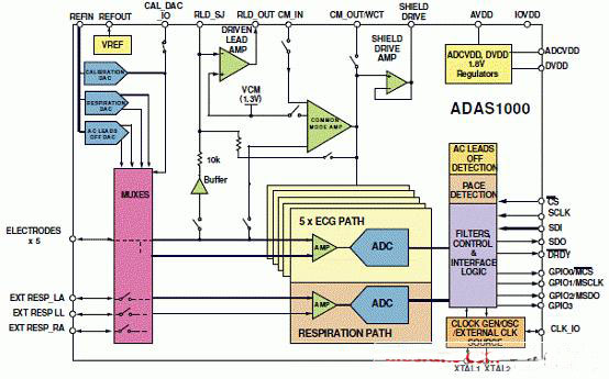 ADI模擬前端ADAS1000低功耗五電極心電圖(ECG)系統(tǒng)解決方案