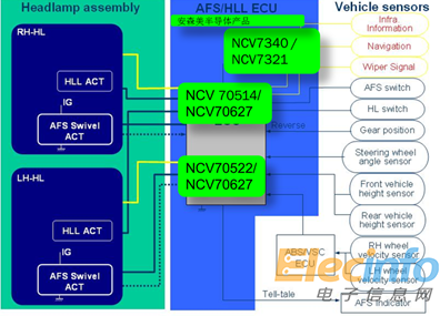 安森美半導(dǎo)體提供多種方案用于AFS,主要產(chǎn)品如低功耗高速CAN收發(fā)器NCV7340和獨(dú)立式低功耗混合信號(hào)LIN收發(fā)器NCV7321、微步進(jìn)電機(jī)驅(qū)動(dòng)器NCV70514、NCV70627和NCV70522。
