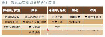 通過一個功耗極低的緊湊器件來精確檢測和測量運動的能力,幾乎對任何涉及到運動的應(yīng)用都是有價值的,甚至對那些運動要求不是很關(guān)鍵的應(yīng)用也是有價值的。表1按運動類型列出了一些基本醫(yī)療應(yīng)用。需要解決更多挑戰(zhàn)的更高級應(yīng)用將在稍后討論。