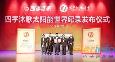 四季沐歌太陽能熱水器一舉打破兩項世界紀錄