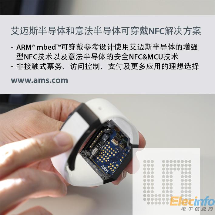 中國 2016年3月8日 全球領(lǐng)先的高性能傳感器和模擬IC解決方案供應(yīng)商艾邁斯半導(dǎo)體公司(ams AG,SIX股票代碼:AMS),以及橫跨多重電子應(yīng)用領(lǐng)域、全球領(lǐng)先的半導(dǎo)體供應(yīng)商意法半導(dǎo)體(STMicroelectronics,簡稱:ST;紐約證券交易所代碼:STM),今日宣布ARM新的穿戴式參考設(shè)計選用兩家公司的NFC解決方案提供安全、高性能的NFC和微控制器功能。