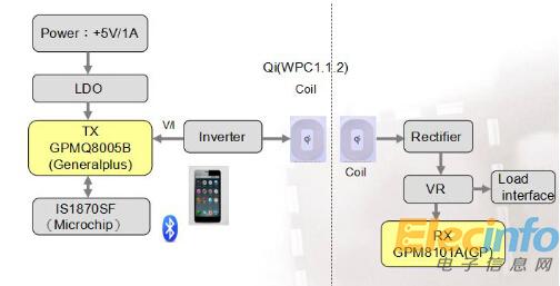 大聯(lián)大品佳的Generalplus(凌通科技)的GPMQ8005B支持+5V/1ADC輸入,2.5W-3W輸出;支持QI(WPC1.1.2)標準,支持A5/A11線圈;TX與RX耦合頻率在130KHz(不同廠家可能頻率可能不同,主要看線圈諧振電容值);支持BLE4.0數(shù)據(jù)傳輸,同時支持iBeacon以及BeaconThings應(yīng)用;工作環(huán)境:-40℃-+85℃。