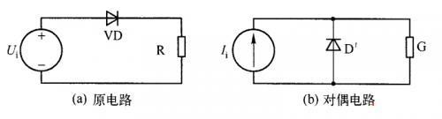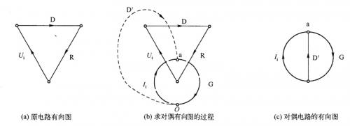 規(guī)則4:含二極管D的有向支路順時針方向轉(zhuǎn)90°,即得含對偶二極管D'的有向支路,從而可以確定對偶二極管的極性。