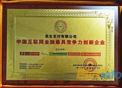 易生支付獲中國(guó)互聯(lián)網(wǎng)金融最具競(jìng)爭(zhēng)力創(chuàng)新企業(yè)