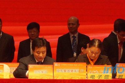 京東集團(tuán)副總裁杜正平(前排左一)代表京東集團(tuán)與肇慶市人民政府簽訂戰(zhàn)略合作框架協(xié)議
