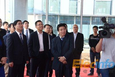 肇慶市委書記賴澤華書記(左一)與其他肇慶市政府領(lǐng)導(dǎo)參觀京東華南云計(jì)算運(yùn)營(yíng)中心并由京東集團(tuán)副總裁杜正平(右一)進(jìn)行講解