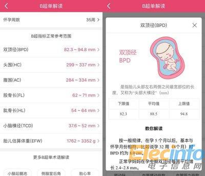 除此之外,B超單解讀、癥狀解讀也將為眾多孕媽排憂解難。B超單數(shù)據(jù)復(fù)雜,術(shù)語專業(yè),普通媽媽不理解在所難免。全新的解讀功不僅能通過懷孕周期,列出對應(yīng)B超指標(biāo)正常參考范圍,更羅列了20余項(xiàng)術(shù)語解讀,讓孕媽不再如讀天書。孕婦在懷孕期間會遇到很多不適之處,新增的癥狀解讀能夠針對癥狀解讀詳情。對于常見癥狀,頁面采用醫(yī)生問答的形式展現(xiàn),專家解答讓媽媽更安心。