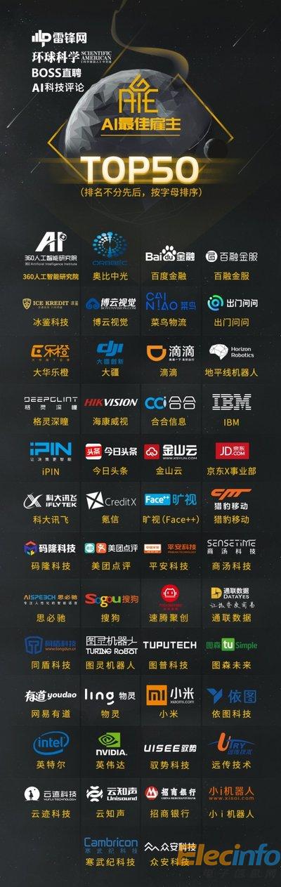 BOSS直聘聯(lián)合發(fā)布2017 AI最佳雇主50強(qiáng)