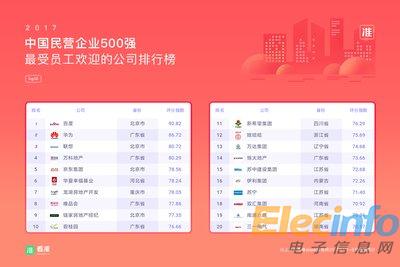 不久前,全國工商聯(lián)以企業(yè)營業(yè)收入為參考標(biāo)準(zhǔn),發(fā)布了2017年中國民營企業(yè)500強(qiáng)名單,引發(fā)熱議?!?017中國民營企業(yè)500強(qiáng)調(diào)研分析報(bào)告》顯示,本次民企500強(qiáng)入圍門檻為120.52億元,較2015年增加18.77億元。中國民企500強(qiáng)中有16家入圍世界500強(qiáng)榜單,比去年增4家。在2017民營企業(yè)500強(qiáng)榜單基礎(chǔ)上,看準(zhǔn)君從看準(zhǔn)app&看準(zhǔn)網(wǎng)的平臺數(shù)據(jù)中進(jìn)一步提取數(shù)據(jù)比對,以員工評分為主要依據(jù),選出其中最受員工歡迎的50家民營企業(yè)。
