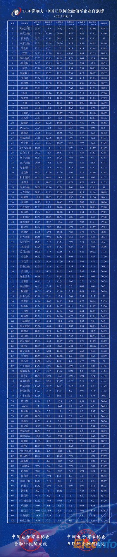 TOP影響力丨中國(guó)互聯(lián)網(wǎng)金融領(lǐng)軍企業(yè)百?gòu)?qiáng)榜(第二期)榜單