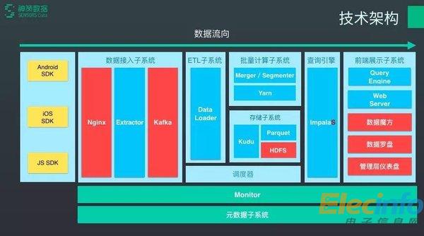 注:該圖從左至右表明數(shù)據(jù)的整體流向,其中紅色部分,為百聯(lián)全渠道現(xiàn)有模塊和系統(tǒng),其他部分,為直接復(fù)用神策分析現(xiàn)有的模塊。