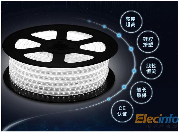 燈帶因把LED燈用特殊的加工工藝焊接在銅線或者帶狀柔性線路板上面,再連接上電源發(fā)光,發(fā)光時(shí)形狀如一條光帶而得名。又因其色彩豐富,可塑性強(qiáng)被廣泛運(yùn)用于裝飾照明、辦公照明、貨架展柜照明及戶外亮化等領(lǐng)域。而高壓燈帶因其電源小型化,級(jí)聯(lián)長(zhǎng),塑膠原料擠出成型材質(zhì)作為安全保護(hù)膜,安裝簡(jiǎn)單,即插即用,逐漸受到各行各業(yè)需求客戶的青睞。
