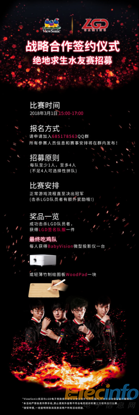 據(jù)悉,LGD電子競(jìng)技俱樂部與ViewSonic優(yōu)派已通過微博預(yù)熱及直播預(yù)熱等宣傳方式透露戰(zhàn)略合作資訊,用戶可參與相關(guān)活動(dòng)獲得包括LGD隊(duì)服等在內(nèi)的神秘小禮品。同時(shí),“吃雞”水友可通過報(bào)名獲得與LGD戰(zhàn)隊(duì)及優(yōu)派戰(zhàn)隊(duì)爭(zhēng)鋒對(duì)決的機(jī)會(huì),最終吃雞隊(duì)將有機(jī)會(huì)每人獲得BabyVision微型投影機(jī)或輕薄竹制繪圖板WoodPad一臺(tái)。