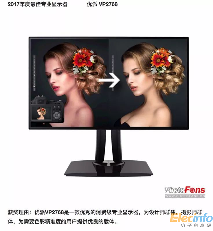 在佳友在線評選的2017年度科技產(chǎn)品中,ViewSonic優(yōu)派VP系列27英寸2K顯示器VP2768,憑借其硬件校準(zhǔn)、100%sRGB色彩表現(xiàn)及時尚微邊框的外觀設(shè)計,榮膺佳友在線網(wǎng)頒布的“最佳專業(yè)顯示器”獎。 VP2768為設(shè)計師和攝影師等群體提供優(yōu)良載體。此外,優(yōu)派PX725HD家庭娛樂投影機(jī)同樣憑借其1080P高畫質(zhì)分辨率搭載六倍速RGBRGB 色輪、SuperColorTM配合Rec.709及3X Fast Input響應(yīng)功能,榮膺年度“最佳投影機(jī)”獎。