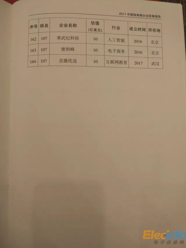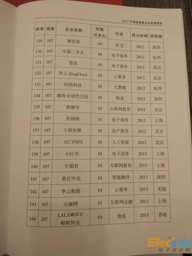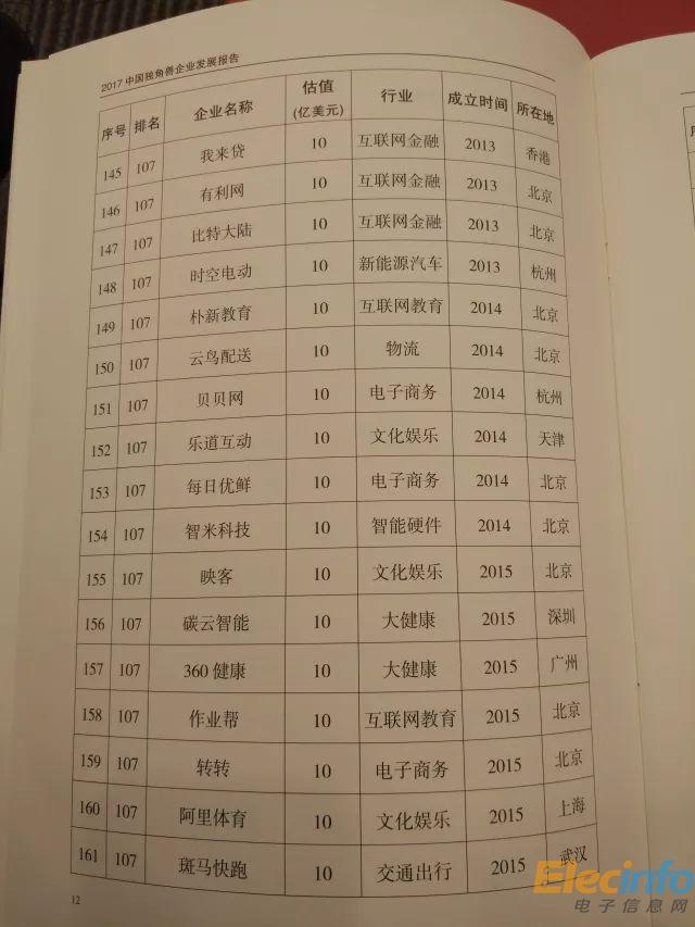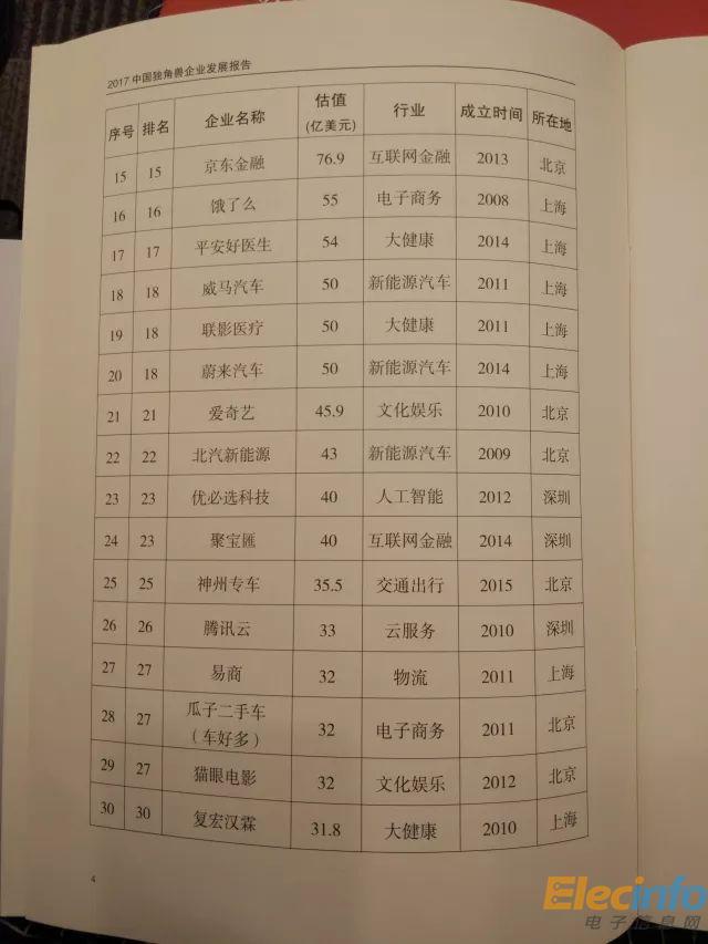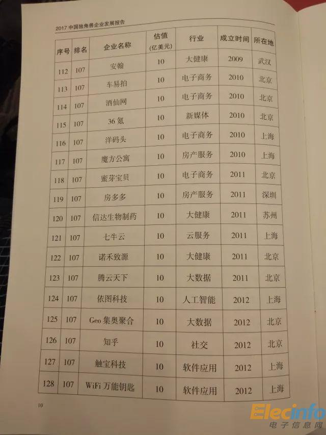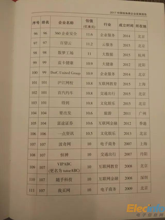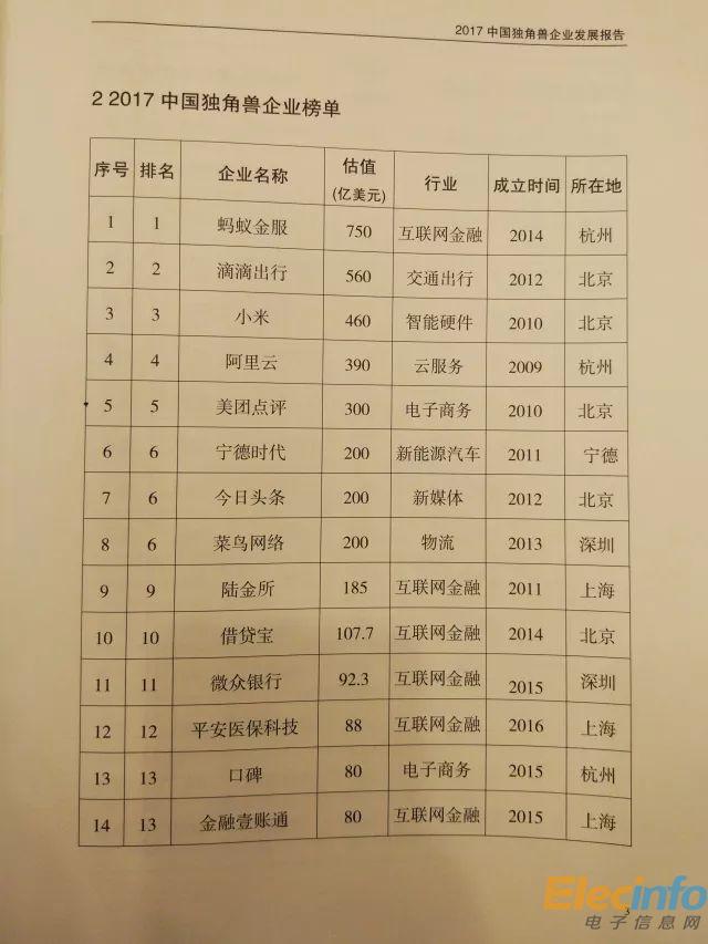 科技部 2017年中國(guó)獨(dú)角獸企業(yè)榜單