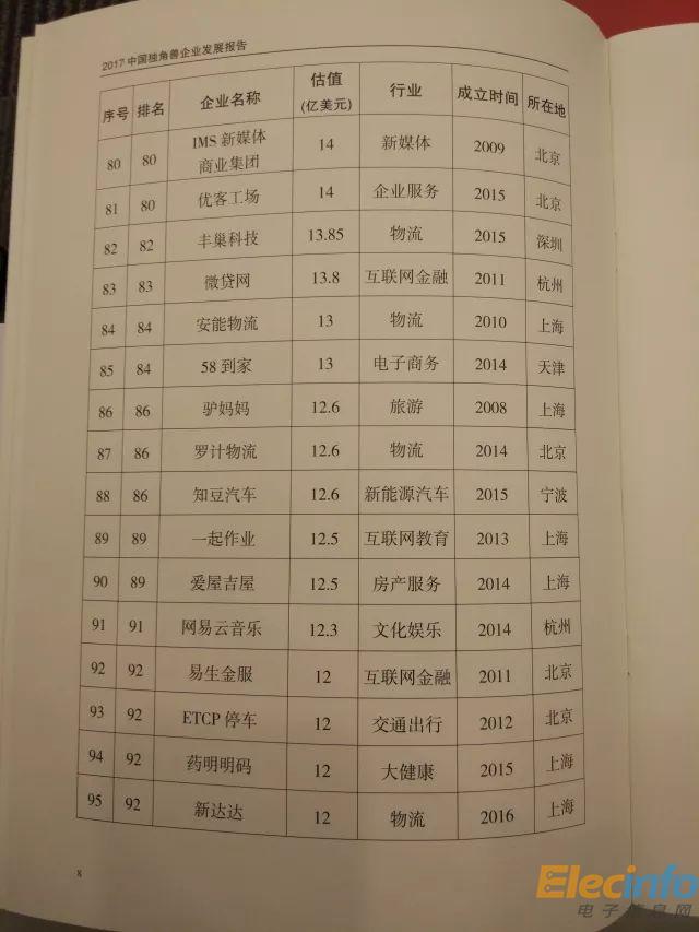 2017年獨(dú)角獸企業(yè)具體榜單: