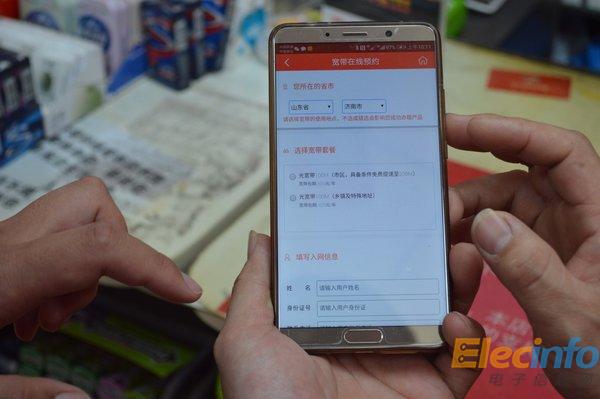 山東濟(jì)南京東便利店店主徐柏林正在為客戶辦理聯(lián)通寬帶申請業(yè)務(wù)