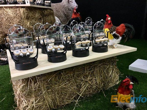 大會現(xiàn)場特別設(shè)置“跑步雞”展示區(qū),上圖為跑步雞腳環(huán),用于統(tǒng)計雞的運動步數(shù)