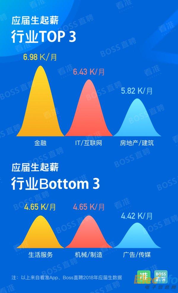 從2018應屆生整體薪資水平來看,起薪最高的3個行業(yè)是:金融、IT/互聯(lián)網(wǎng)、房地產(chǎn)/建筑。