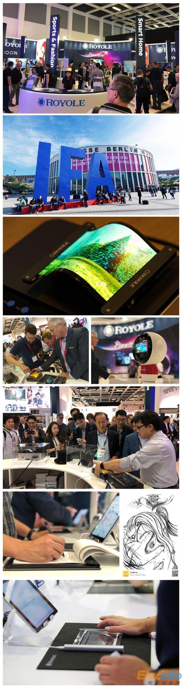 當?shù)貢r間8月31日至9月5日,一年一度的全球消費類電子產(chǎn)品盛會 -- 德國柏林國際家電及電子產(chǎn)品博覽會(IFA)正式舉辦,柔宇科技在3.2館129號展臺(Hall 3.2 NO.129)集中展出柔性屏時尚禮帽、柔性屏機器人小柔和小宇、快速充電解決方案柔充、智能手寫本柔記 RoWrite、可卷曲穿戴手機 FlexPhone、柔性電子智能臺燈、3D 移動影院 Royole Moon、柔性弧形電子汽車中控、柔性智能鍵盤、智能開關(guān)等“柔性星球”系列產(chǎn)品和技術(shù)解決方案,已量產(chǎn)的全柔性顯示屏首次亮相國際展會,現(xiàn)場體驗的各國觀眾絡(luò)繹不絕。
