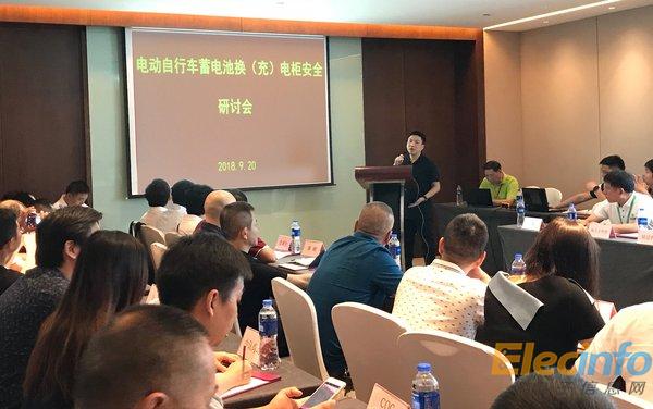 e換電黃嘉曦于電動(dòng)車蓄電池?fù)Q(充)電柜安全研討會(huì)上演講