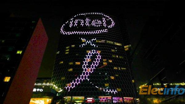 9月28日夜,英特爾的藍(lán)色LOGO變?yōu)榉凵?,閃耀在北京三里屯