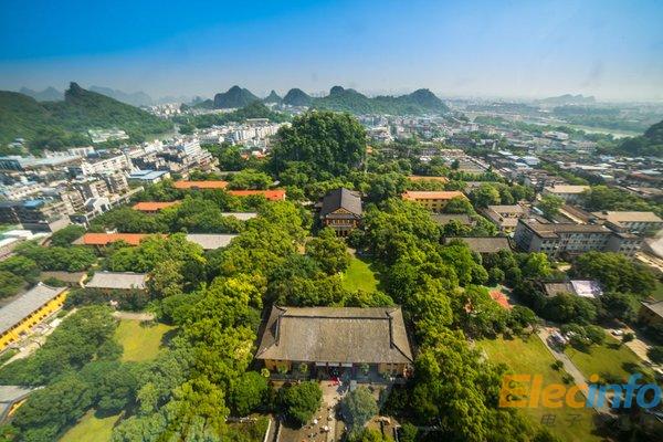 乘坐直升機(jī)俯瞰桂林山水。