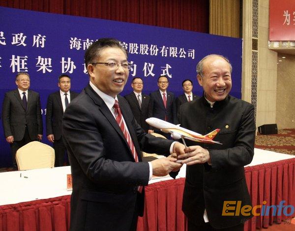 當天,海南航空控股股份有限公司與烏魯木齊市人民政府簽署戰(zhàn)略合作框架協(xié)議。雙方計劃結(jié)合各自優(yōu)勢做大做強烏魯木齊航空,將烏魯木齊航空打造成為貫徹落實國家“一帶一路”倡議、擴大對外開放的重要平臺。烏魯木齊市委副書記、市長牙生·司地克,烏魯木齊市委副書記、常務(wù)副市長高峰,烏魯木齊市委常委、秘書長謝少迪,新疆機場(集團)有限責任公司黨委副書記、副董事長、總經(jīng)理、烏魯木齊市副市長馬伊磊;海航集團副董事長兼總裁張嶺,海航集團董事、海航航空董事長包啟發(fā),海航航空總裁兼財務(wù)總監(jiān)劉璐,烏魯木齊航空董事長韓錄海等雙方領(lǐng)導(dǎo)出席會談及簽約儀式。
