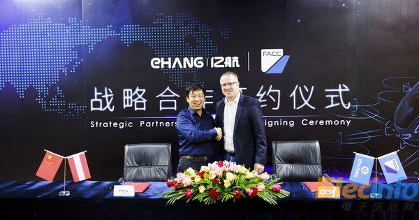 FACC CEO Robert Machtlinger(右) 與億航創(chuàng)始人、董事長(zhǎng)、CEO胡華智簽署戰(zhàn)略合作協(xié)議