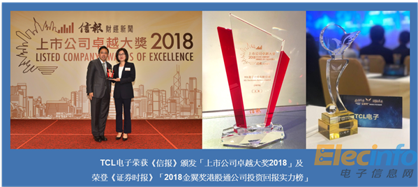 TCL電子榮獲《信報(bào)》頒發(fā)“上市公司卓越大獎2018”及榮登《證券時(shí)報(bào)》“2018金翼獎港股通公司投資回報(bào)實(shí)力榜”