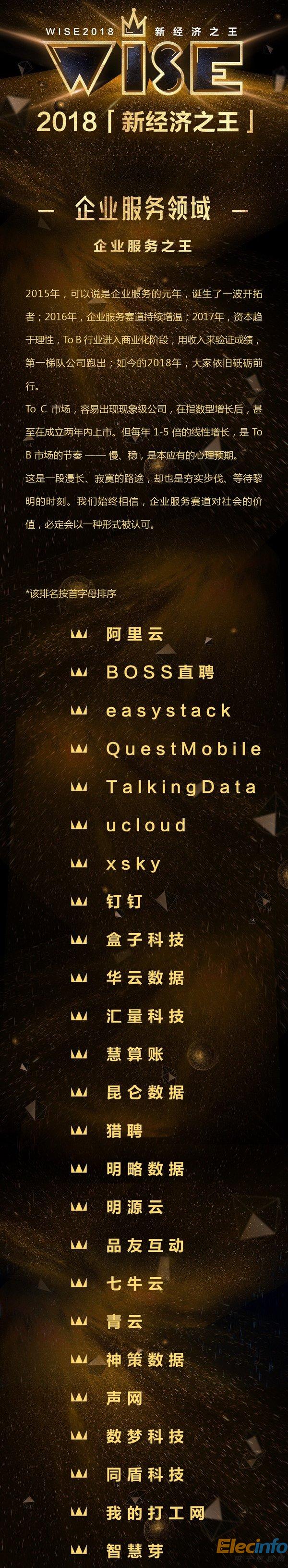 11月27日-28日,36氪 WISE 大會2018以“新經(jīng)濟之王”為主題,聚焦新資本、新技術(shù)、新信息深度融合之下,新經(jīng)濟的模式變革和商業(yè)創(chuàng)新。峰會隆重發(fā)布了2018年“新經(jīng)濟之王”,BOSS直聘、阿里云、阿里釘釘?shù)?5家企業(yè)榮獲企業(yè)服務(wù)領(lǐng)域“企業(yè)服務(wù)之王”。