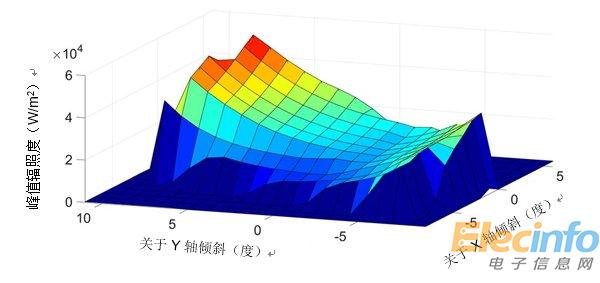 散射屏上的峰值輻照度作為輸入陽(yáng)光角度的函數(shù)