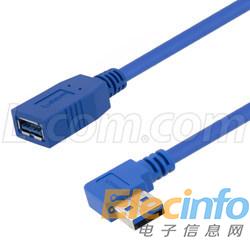 配置母頭連接器的直角型USB 3.0線纜組件
