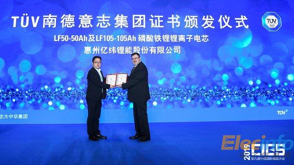 億緯鋰能兩款鋰離子電芯獲TUV南德認(rèn)證證書